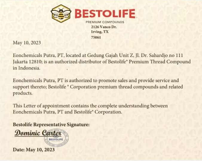 Sebagai distributor resmi Bestolife di Indonesia, PT Eonchemical Putra memastikan produk-produk Bestolife yang didistribusikan merupakan produk asli dari Bestolife. Dapat dibuktikan dengan adanya CoA (Certificate of Analysis) dari pihak principle setiap pengiriman produk berdasarkan batch number per masing-masing produk. Selain itu, CoA juga merupakan bukti penting untuk melengkapi dokumen pada proses audit internal maupun eksternal
