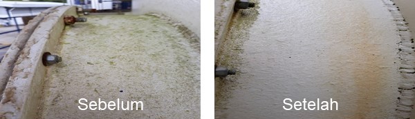 Customer biasanya membersihkan lumut tersebut dengan cara disikat dengan tambahan detergen. Cara ini ternyata tidak efektif karena:
