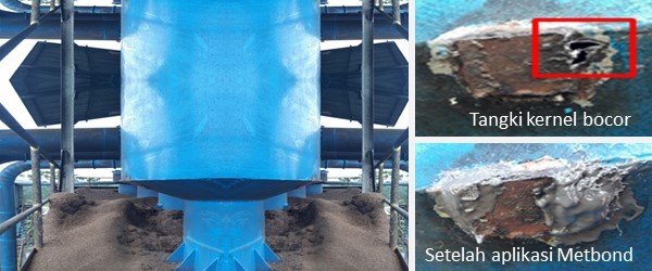 Tangki kernel di pabrik kelapa sawit yang bocor juga telah ditangani dengan baik menggunakan Metbond.