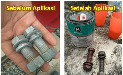 Setelah dilakukan trial terlihat perbedaan pada kondisi baut dimana baut yang dilapisi Molykote HSC plus grease anti karat tidak mengalami perubahan bentuk (berkarat) karena baut terjaga dan terlindungi Molykote HSC plus.