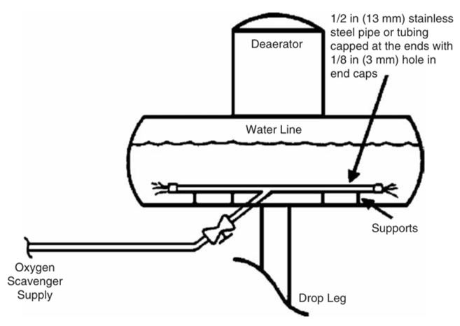 - Oxygen scavenger diinject ke dalam air, pada deaerator/ feedwater storage tank