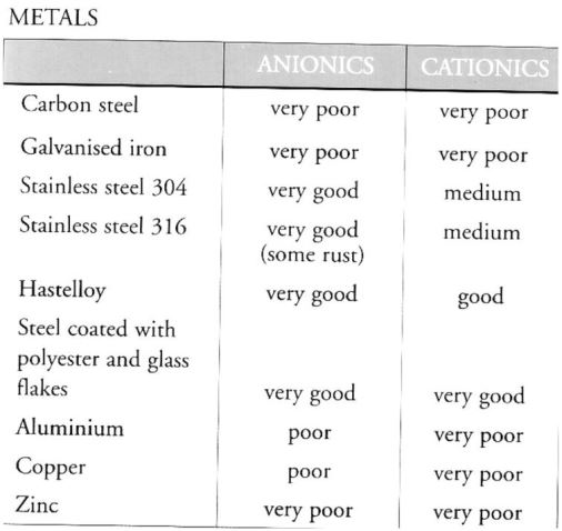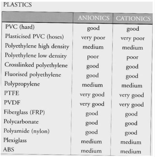 Wadah water treatment chemical jenis flokulan ini umumnya menggunakan jenis plastik dan metal. Pertimbangan dalam memilih wadah terutama didasarkan atas pH (anionic : netral, cationic : asam). Flokulan ini mengandung solvent yang dapat bereaksi dengan plastik atau karet. Polimer yang terkandung juga dapat bereaksi dengan metal. Berikut ini adalah tabel yang dapat Anda gunakan untuk pemilihan wadah.