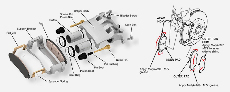 - High-temperature resistant lubricant (up to 400°C), to remain stable during maximum braking at high temperatures