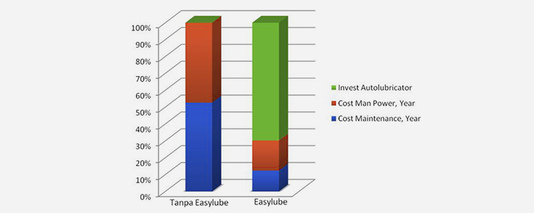 Based on the study of Eonlube usage in the crusher compartment of the company (see graph above), it shows that Eonlube can reduce Maintenance Costs by up to 40% and Manpower Costs by up to 25% per year.