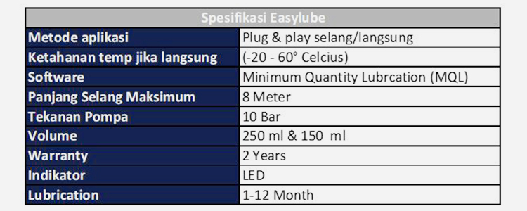 Eonlube is a single-point autolubricator supported by MQL features, providing a simple and logical formula to determine lubricant volume and top-up intervals. Suitable for various machine components in industries such as power plants, food, animal feed, palm oil mills, refineries, mining, oil and gas, automotive, petrochemicals, electronics, pharmaceuticals, manufacturing, pipelines, pulp & paper, etc