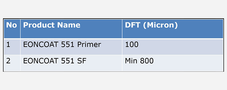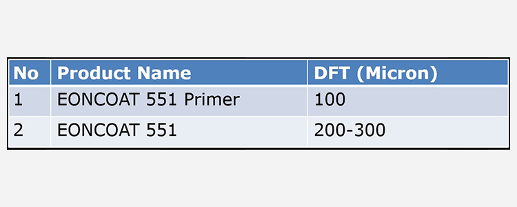 - EonCoat 551 is a solvent-based epoxy coating that serves as the top coat, providing optimal protection when the floor is exposed to chemicals or oil spills.