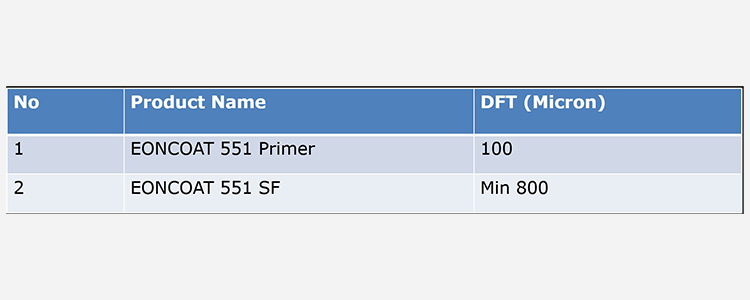 EonCoat 551 Primer is an epoxy-based base coating that functions as an intercoat adhesion (intermediate binder) between the concrete floor and the top coat. EonCoat 551 SF, on the other hand, is a solvent-free epoxy coating that serves as the top coat, providing optimal protection when the floor is exposed to chemical spills or falling work objects.
