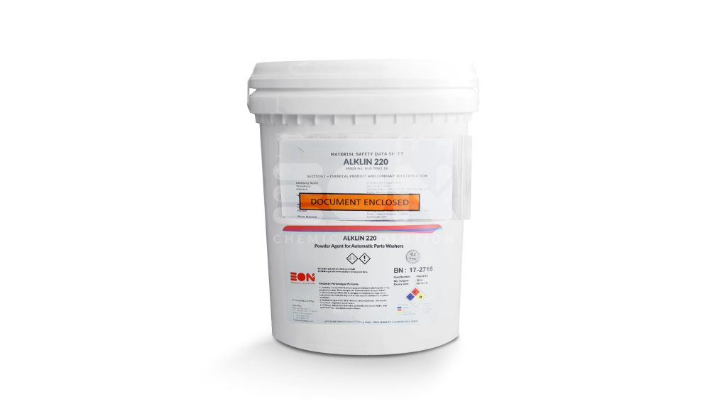 ALKLIN 220 merupakan pembersih berbasis sufaktan bubuk yang efisien dan diformulasikan khusus untuk mesin pencuci spareparts. Alklin 220 memiliki sejumlah keunggulan seperti daya bersih yang sangat baik, tidak dapat terbakar dan cocok untuk berbagai sistem otomatis pencucian spareparts.