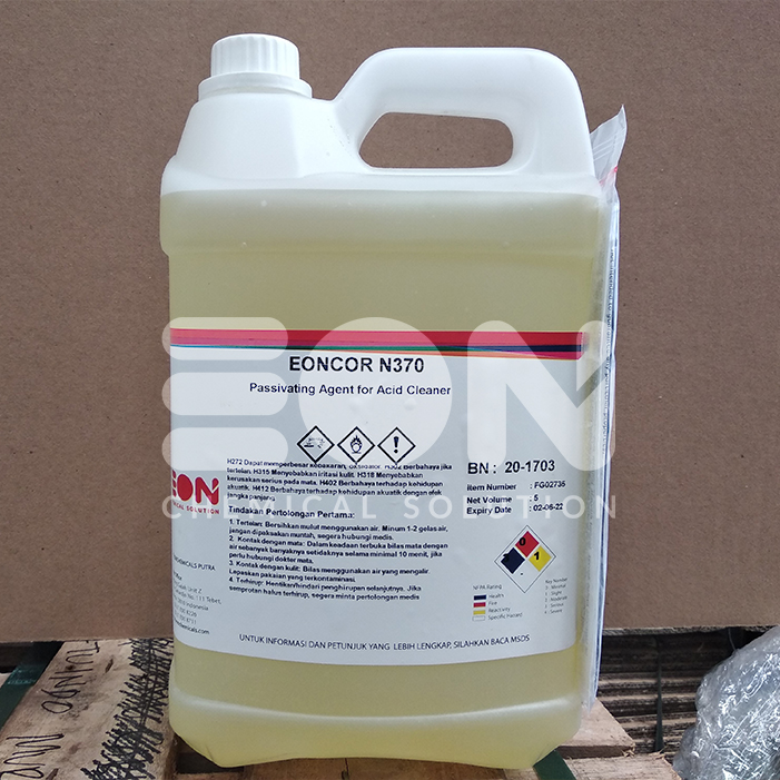 EONCOR N370 merupakan corrosion inhibitor yang khusus didesain sebagai passivating agent. Produk ini diformulasikan khusus untuk mencegah pembentukan karat yang biasanya cepat terjadi kembali setelah pembersihan logam dengan asam. EONCOR N370 menyelimuti permukaan logam dengan senyawa inert yang memberikan perlindungan dan ketahanan terhadap karat.