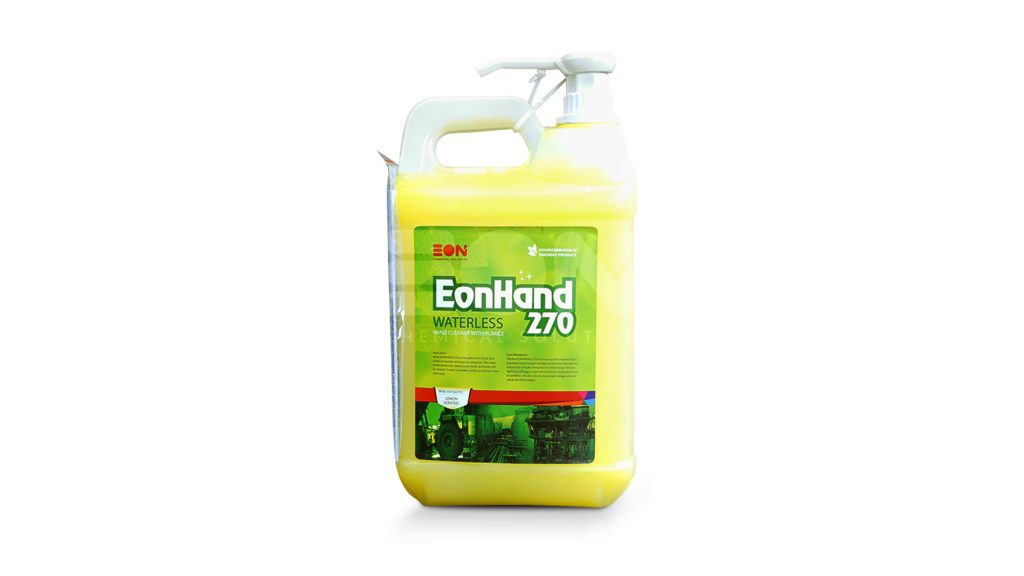 EONHAND 270 adalah sabun tangan tanpa air yang mengandung pumice, emulsifier, dan zat pemelihara kulit. EONHAND 270 tidak mengandung pelarut hidrokarbon sehingga aman terhadap lingkungan. Produk ini dengan mudah akan menghilangkan kotoran, gemuk, dan kotoran yang melekat pada tangan tanpa menggunakan air, kemudian tangan menjadi bersih dan higienis.