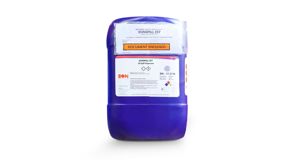 EONSPILL 257 merupakan oil spill dispersant (OSD) yang kuat untuk mengatasi tumpahan minyak di area perairan darat dan laut, namun memiliki toksisitas yang sangat rendah terhadap ikan, binatang laut dan tanaman pantai. Sangat efektif untuk berbagai jenis tumpahan minyak.