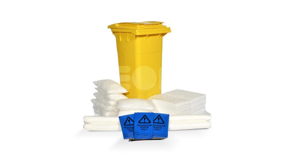 EONSPILLKIT 120L merupakan kit atau seperangkat alat yang memiliki kemampuan menyerap minyak hingga 120 Liter Cukup cepat, serta chemical pendispersi minyak yaitu EONSPILL 257 yang digunakan untuk menangani tumpahan minyak di air agar tidak membahayakan hewan dan lingkungan sekitar