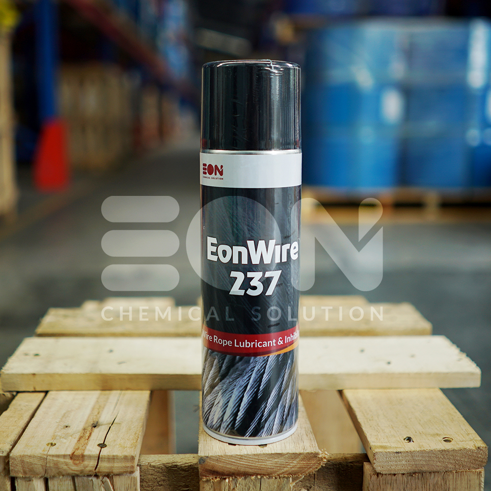 EONWIRE 237 adalah campuran pelumas dan anti karat untuk memelihara kawat sling. Melekat pada permukaan kawat sling dan melindungi kawat terhadap gesekan dan karat. Tidak akan meleleh atau menetes pada tekanan tinggi atau temperature tinggi. EONWIRE 237 mengandung campuran lubricant, additive, zat anti karat dan tidak mengandung chlorinated Hydrocarbon.