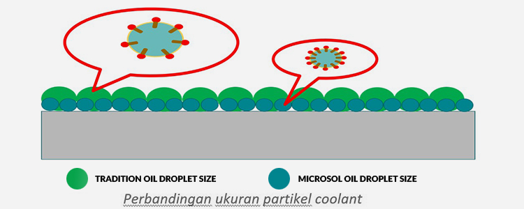- Memiliki ukuran partikel kecil (mikro), sehingga penetrasinya lebih baik dan membuat coolant yang terbawa (carry off) oleh chip hasil proses maupun benda kerja sangat sedikit