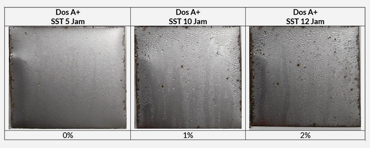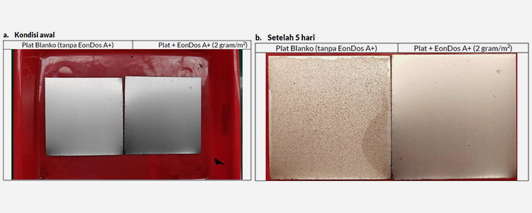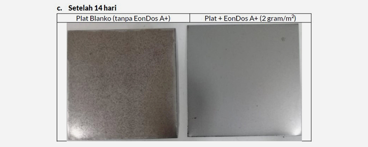 Perbandingan plat steel tanpa dan dengan anti karat EonDos A+ dalam 5 & 14 hari