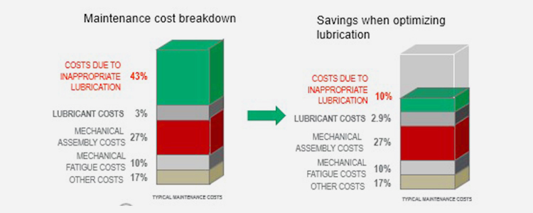 Berdasarkan data study IAME (Italian Association of Maintenance Engineers) & IRI (International Research Institute) in conjunction with SKF during the 1998 conference, penggunaan lubricant yg tepat dapat menurunkan cost maintenance hingga 33%.