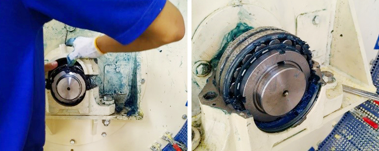 Salah satu customer di Magelang sering memiliki masalah overheating pada bearing hammer mill hingga suhu 80 C. Grease dalam bearing kering dalam waktu 1 minggu, sehingga harus dilakukan pembongkaran dan regreasing setiap minggu.