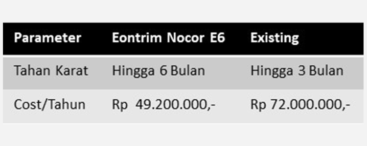 Untuk mengatasi masalah ini, Eonchemicals memberikan solusi dengan EonTrim Nocor E6, rust preventive atau cairan pencegah karat dengan fitur dan benefit berikut: