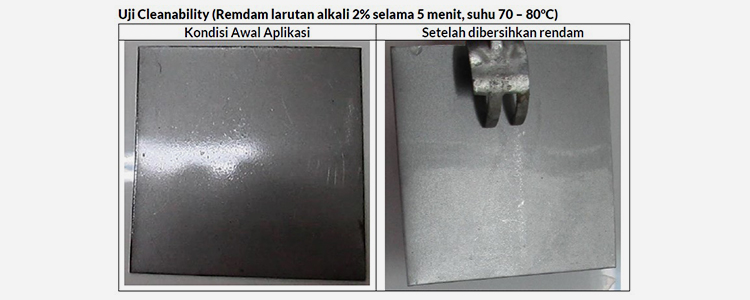 Hasil test cleanability EonFilm 750 dalam alkali 2%