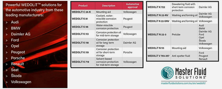 Salah satu produsen mobil ternama memerlukan oli yang sangat banyak (boros) untuk drawing dan stamping. Hal ini dilakukan untuk memberikan hasil yang presisi dan untuk mencegah karat. Eonchemcals menghadirkan produk solusi Wedolit N 22-3 yang merupakan low viscous oil, didesain khusus untuk aplikasi drawing dan stamping dengan fitur dan benefit sebagai berikut: