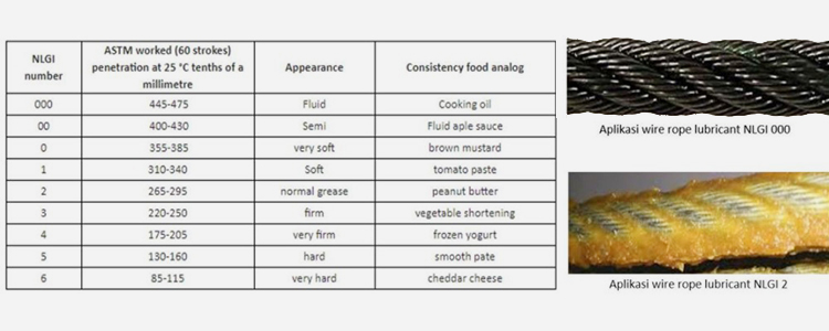 Karena itu, dalam memilih pelumas wire rope harus memperhatikan daya penetrasinya atau NLGI Grade Penetration.