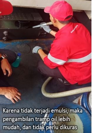 Setelah 30 hari, tramp oil tidak teremulsi dengan coolant (mengambang) sehingga tramp oil dapat dibersihkan dengan mudah tanpa perlu dilakukan pengurasan.